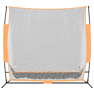 Ett praktiskt och färgstarkt övningsnät i svart och orange polyester perfekt för hemmagolf. Nätet är stabilt och lätt att montera mellan stolpar eller i trädgården.
